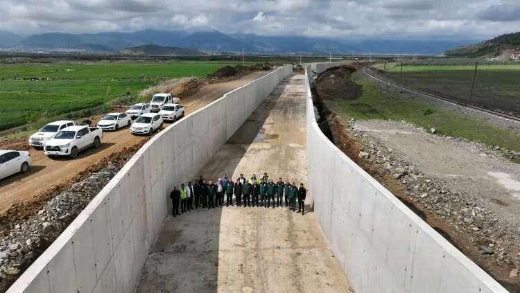 Hatay'da 390 bin 343 dekar tarımsal arazideki üretim potansiyelini artıracak Tahtaköprü Sulaması 1. Kısım İnşaatı işi kapsamındaki 36 kilometrelik sulama kanalı yapımı sürüyor.