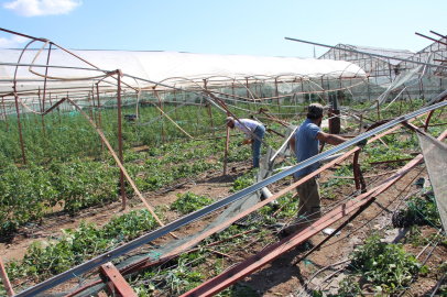 Kumlucalı çiftçiler hortumun yırttığı plastik örtülerin yerine yenisini örtmek için işçi bulamadıklarını belirttiler.