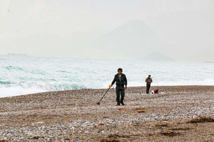 Konyaaltı sahili fırtınadan sonra definecilerin ekmek kapısı oldu