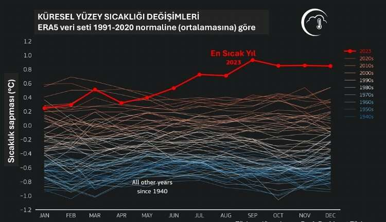 Son 12 ayın yüzey sıcaklık ortalamasının 1,5 dereceyi geçmesinin, iklim krizine karşı uyarı niteliği taşıdığı belirtildi.