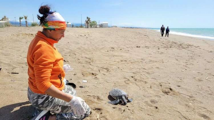 Manavgat'ta tehlike altında olan yeşil deniz kaplumbağası bulundu