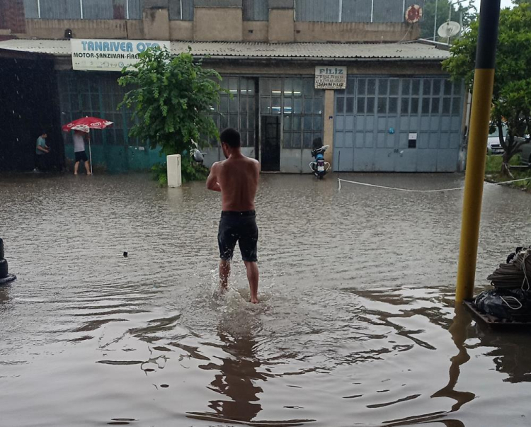 Öte yandan esnaf, vatandaşlar ve ekiplerin su baskınlarının yaşandığı noktalarda çalışmaları sürüyor.