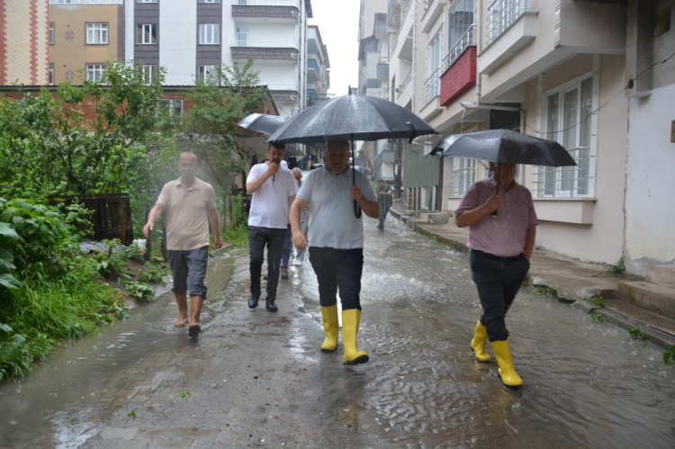Aşırı yağışların ardından saha çalışmalarını yerinde inceleyen Ünye Belediye Başkanı Hüseyin Tavlı, “Sabah saat 8 sıralarında başlayan yağmur. daha da şiddetlenmesiyle belli bölgelerde sel ve su taşkınlarına neden olmuştur. Vatandaşlarımızdan ricamız mazgal ağızlarına poşetlerin konulmaması, mazgalları tıkayacak bir cismin orada bulunmamasına mutlaka özen göstermemiz gerekir. Selle beraber olabilecek bir su taşkınrıyf özellikle poşet türü malzemeler suların gitmesini engelliyor. Sabahtan itibaren karton ve poşetlerin temizliğini yapıyoruz. Vatandaşlarımızdan bunlara duyarlı olmalarını istirham ediyorum. Şu ana kadar ilçemizde herhangi bir olumsuzluğa rastlamadık. Sahada ekiplerimiz teyakkuzda ve çalışmalarını sürdürüyor. Kırsal bölgelerde şimdiye kadar bir şikâyet gelmedi ancak yollarda ufak çapta sorunlar olduğu gelen bilgiler arasındadır” dedi.
