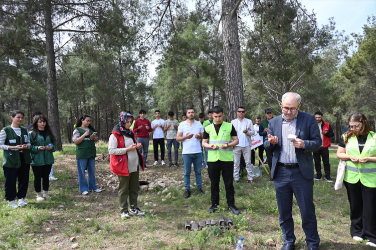 Osmaniye Kadirli'de Yeşilay gönüllüleri, şehit aileleri ve öğrencilerle Sülemiş Çamlığı'nda çevre temizliği yaptı, şehitler adına fidan dikti. Etkinlik Şehitler Haftası dolayısıyla düzenlendi. (16.04.2026)