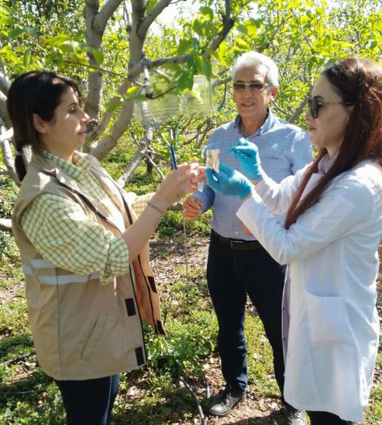 Mersin İl Tarım ve Orman Müdürü Erdem Karadağ ve Tarsus İlçe Tarım ve Orman Müdürü Hayri Erdoğan'ın nezaretindeki saha ziyaretlerinde, teknik personel meyve üreticilerine doğru mücadele tekniklerini anlatarak bilgiler verildi.