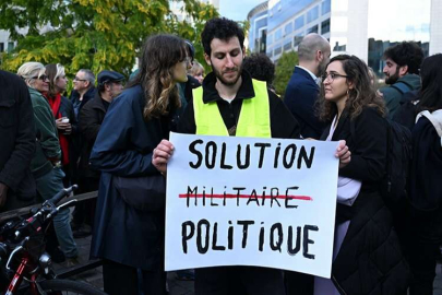 Avrupa Birliği (AB) kurumlarının bulunduğu Schuman Meydanı'nda yerel saatle 17.30 civarında bir araya gelen Araplar ve Yahudilerden oluşan bir grup, "Barış şimdi", "Arap-Yahudi dayanışması", "Seçimimiz birlik olmak", "Siyasi çözüm, askeri değil" yazılı pankartlar taşıdı.
