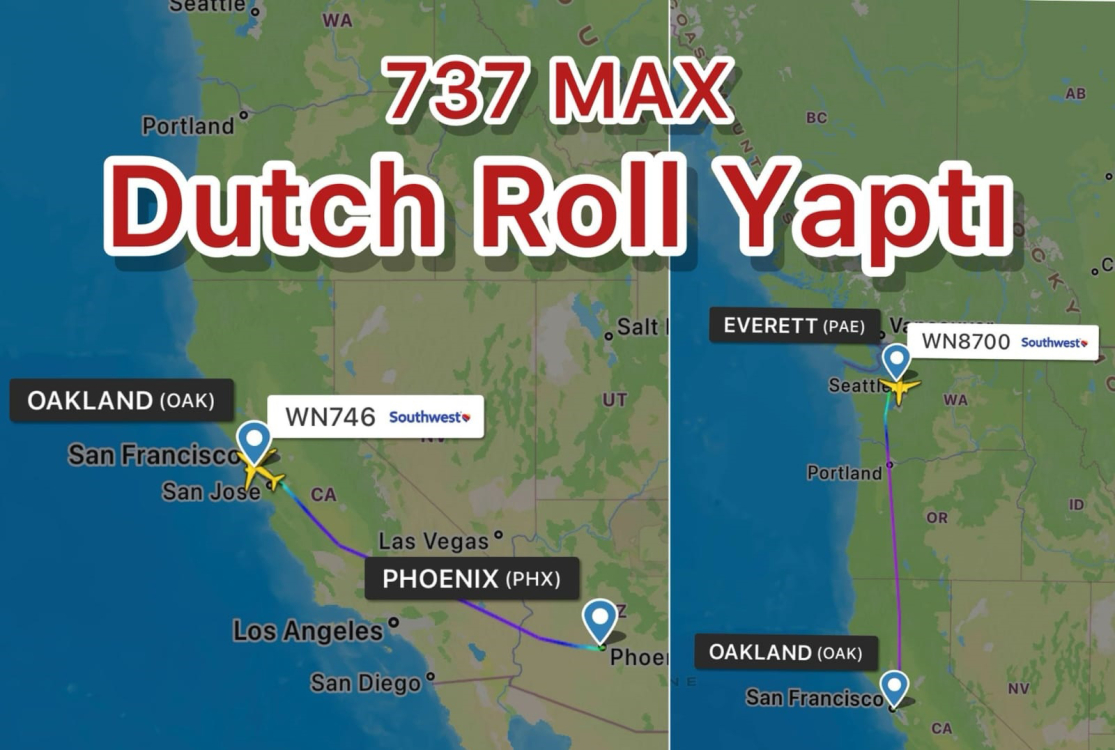 Southwest Airlines'ın ABD’de Phoenix - Oakland seferini yapan N8825Q tescilli Boeing 737 MAX, seyir esnasında 32 bin fitte Dutch Roll yaptı ve gövdesi zarar gördü. Uçak Oakland'a geri dönüş yaparak güvenli bir şekilde indi. Uçakta bulunan 175 yolcu ve altı mürettebat arasında herhangi bir yaralanan olmadığı öğrenildi.