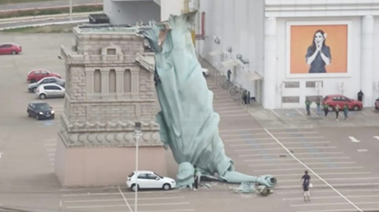 Brezilya’da etkili olan şiddetli fırtına büyük paniğe neden oldu. Porto Alegre kentinde bir mağazanın otoparkında bulunan 24 metrelik Özgürlük Heykeli replikası kuvvetli rüzgâr nedeniyle devrildi.