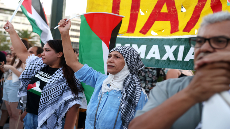 Yunanistan’da yaşayan Filistinliler ve Değişim İçin Sol Antikapitalist Cephe’nin (ANTARSIA) çağrısıyla Sintagma Meydanı’nda bir araya gelen yüzlerce gösterici İsrail karşıtı sloganlar attı.