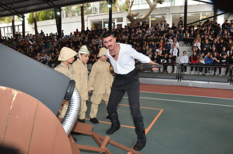 Savaş dönemini anlatan görsellerle desteklenen programda coşku, gurur, hüzün ve gözyaşı bir aradaydı. Ortaokul öğrencilerinin yaptıkları sunumlarda 110. yılı anılan Çanakkale Zaferi ile ilgili türküler seslendirildi, dönemi anlatan drama gösterileri sunuldu, oratorya ve şiirler ile izleyenleri duygulandıran gösterilerin ardından Zeybek Oyunu ile gurur dolu anlar yaşandı. Coşkulu bayrak geçişi töreninin ardından program sona erdi.