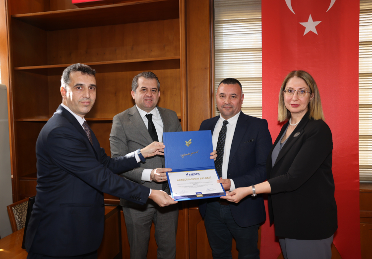 Mesleki Eğitim Değerlendirme ve Akreditasyon Derneği tarafından belirlenen kriterlere yönelik olarak yapılan değerlendirmeler ve saha ziyaretlerinin ardından akredite olmaya hak kazanan programlara Rektörlük Senato Toplantı Salonu’nda düzenlenen törenle belgeleri, Rektör Prof. Dr. Hamit Emrah Beriş ve MEDEK Mesleki Eğitim Akreditasyon Kurulu (MEK) Başkan Yardımcısı Doç. Dr. İsa Vural tarafından takdim edildi.
