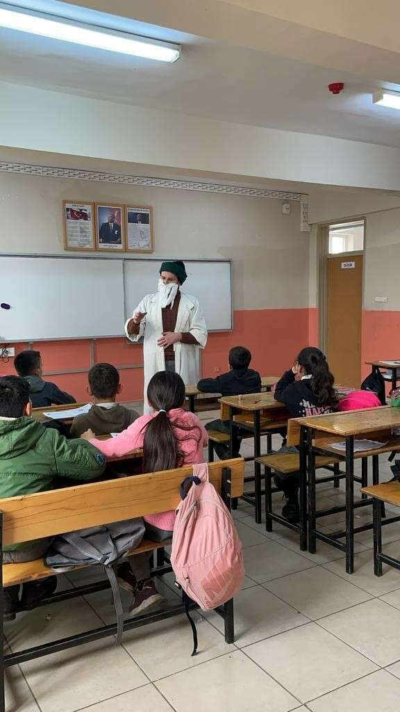 Ağrı'nın Eleşkirt ilçesinde Türkçe Öğretmeni İsa Parlak, "Dilimizin Zenginlikleri Projesi" kapsamında öğrencilerine Dede Korkut'un hikâyelerini canlandırarak anlattı.