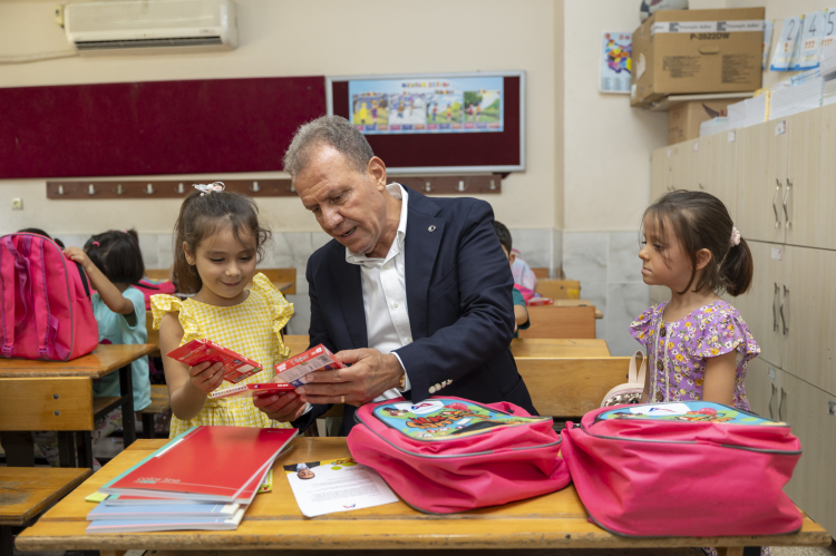 Yeni eğitim ve öğretim yılının ilk ders zili çalmasına sayılı günler kala, 1. sınıf öğrencilerine Mersin Büyükşehir Belediye Başkanı Vahap Seçer tarafından okul çantası desteğinde bulunuldu.