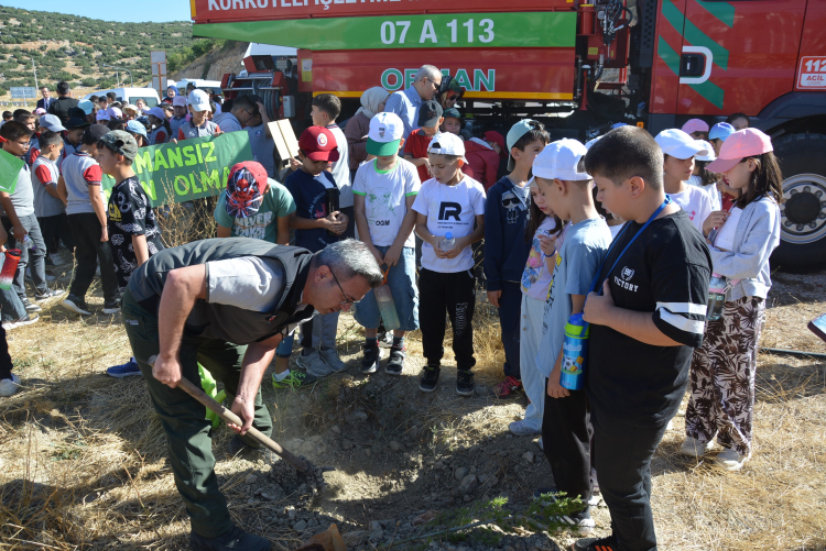 Korkuteli İlçe Milli Eğitim Müdürlüğü ile Korkuteli Orman İşletme Müdürlüğü iş birliğinde, ‘yeşil vatan’ teması doğrultusunda otogar mevkiinde ağaç dikme etkinliği düzenlendi. Programa katılan öğrenciler, hazırladıkları pankart ve dövizlerle etkinliği renklendirirken, 300 fidan toprakla buluşturularak can suyu verildi ve doğaya katkı sağlandı.