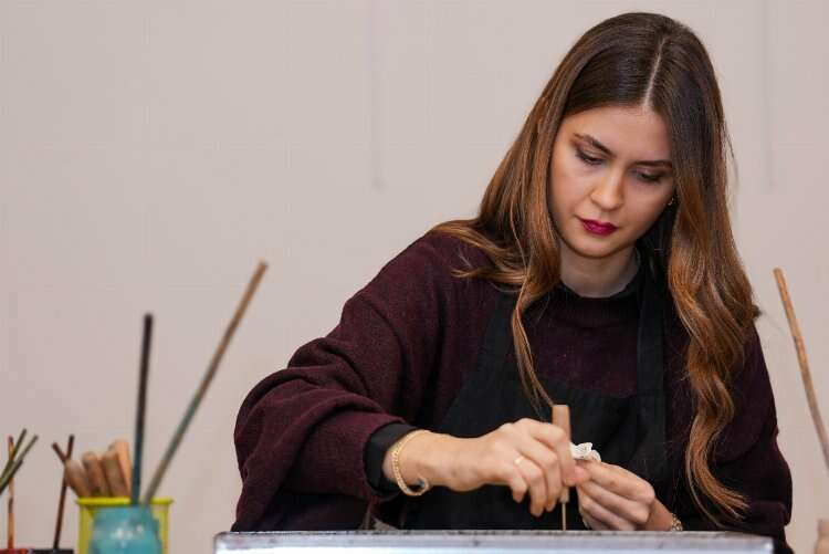 Kursiyerler, ebru sanatının tüm inceliklerini öğreniyorlar