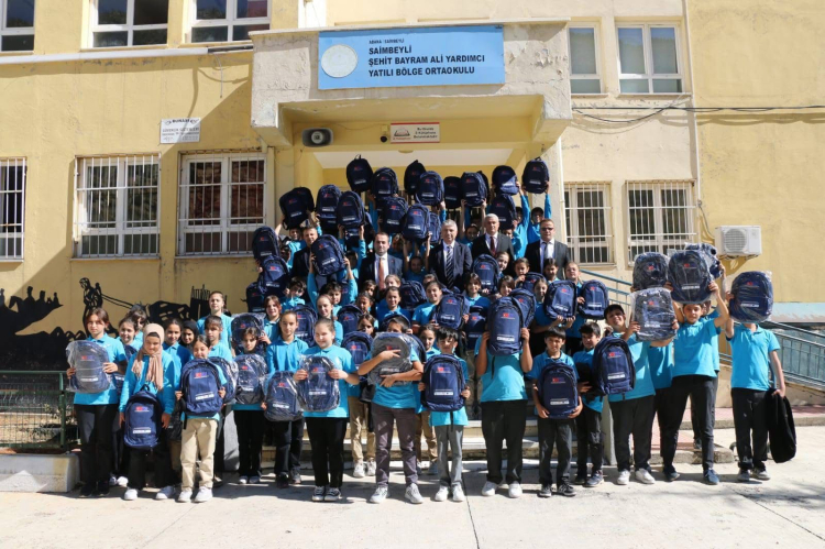 Adana’nın Saimbeyli ilçesinde öğrenciler için çanta ve kırtasiye dağıtımı yapıldı.