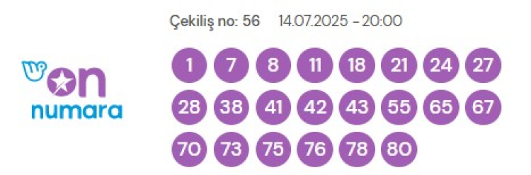 Sisal Şans tarafından noter huzurunda düzenlenen ve Milli Piyango TV Youtube kanalından canlı yayımlanan 14 Temmuz Pazartesi günkü On Numara çekilişinde sonuçlar belli oldu. Çekilişte büyük ikramiye bir sonraki haftaya devrederken, diğer kategorilerde kazananlar ikramiyelerini aldı.