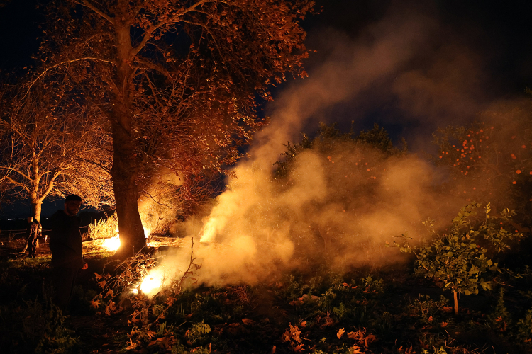 Meteoroloji’nin eksi 1 ve 2 derece uyarıları sonrası Adana’da üreticiler gece boyunca bahçelerde nöbet tuttu. Don pervanelerinin çalıştırılmasıyla narenciye meyveleri zirai donun yıkıcı etkisinden korundu. Pervane olmayan bazı bahçelerde ise geleneksel saman ve lastik yakılarak zarardan korunmaya çalışıldı.