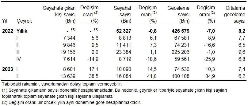 Seyahate çıkan kişi, seyahat ve geceleme sayıları, II. Çeyrek: Nisan-Haziran, 2023