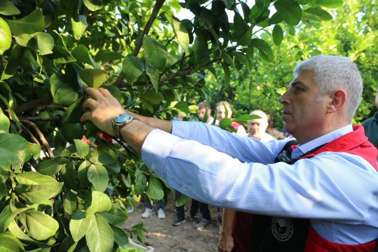 Adana İl Tarım ve Orman Müdürü Atilla Bayazıt, tarımsal üretim alanlarını yerinde incelemek amacıyla çalışmalarını sürdürdü. Müdürlükten yapılan açıklamaya göre, Bayazıt ilk olarak Seyhan ilçesi Çaputçu Mahallesi’ndeki narenciye bahçesini ziyaret ederek, narenciye hasadına katıldı. Üreticiden bilgi alan Bayazıt, sohbet ettiği tarım işçileriyle limon kesimi yaptı. Bayazıt, yeni sezonun tüm üreticilere ve sektöre hayırlı olmasını diledi. Yumurtalık ilçesindeki Yelkoma Dalyanı'nda incelemelerde bulunan Bayazıt, Sadiye-Kırmızıdam Su Ürünleri Kooperatifi Başkanı Mithat Altunay'dan da çalışmalarıyla ilgili bilgi aldı.