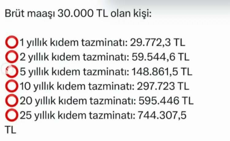 Milyonlarca vatandaşın gündeminde ilk sırada yer alan asgari kıdem tazminatı 2024 sonuçları geldi. İşçinin son brüt ücreti üzerinden öden kıdem tazminatı tavanı belli oldu. İşçinin son işyerinde çalıştığı her yıl için 30 günlük giydirilmiş brüt ücret tutarında ödenen kıdem tazminatı hesaplama işlemi başladı. İşçinin ücreti ne olursa olsun ödenecek kıdem tazminatı tavan tutarını aşamayacağı söylendi. Merak edilen kıdem tazminatı tavanı en yüksek devlet memuruna bir yıllık hizmet karşılığı verilen emekli ikramiyesine göre belirleniyor. Ocak ve temmuz aylarında yılda 2 kez zam alan memurlar için ikramiyeye bağlı olarak kıdem tazminatı tavanı da artıyor.