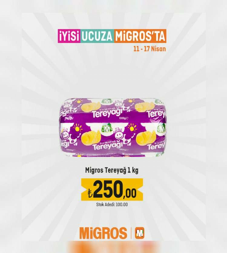 Migros’un farklı kategorilerinde indirim başlarken Nisan ayının ortalarında araştırmalar hız kesmeden devam etmektedir. 11 – 17 Nisan tarihleri aralığında devam edecek olan indirimlerle beraber tereyağı stok yaptıracak rakamlar dikkat çekti. Sosyal medya hesabı üzerinden yapılan paylaşımla beraber tereyağı fiyatına ve kampanyanın detaylarına dair bilgi verildi.
