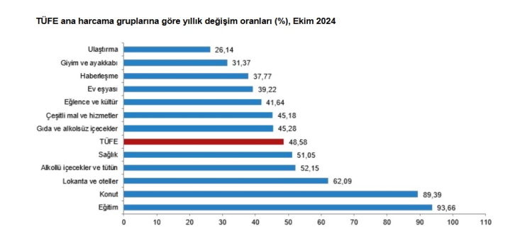 Ekim 2024 itibarıyla TÜFE'deki değişim oranları şu şekilde gerçekleşti:
