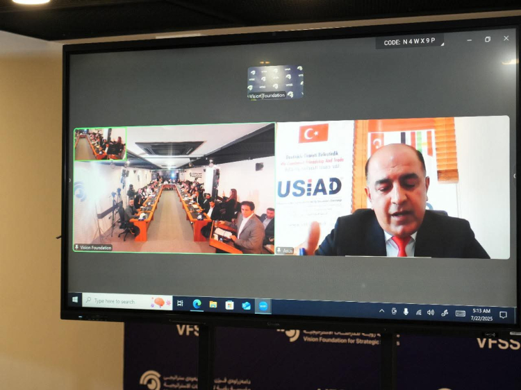 Vizyon Stratejik Araştırmalar Vakfı tarafından düzenlenen “Kürdistan Bölgesi ile Türkiye Arasındaki Ekonomik ve Ticari İlişkiler: Zorluklar ve Çözümler” başlıklı çevrimiçi seminerde konuşan Başkan Nevaf Kılıç, “Türk iş dünyası olarak Süleymaniye’ye büyük bir ilgi duyuyoruz. Şu anda Erbil ve Duhok’a yoğunlaşan ticari yönelimi, Süleymaniye’ye de taşımak için özel bir planlama içerisindeyiz. Süleymaniye Valiliği’nin de bu süreçteki yaklaşımı son derece kıymetli” ifadelerini kullandı.