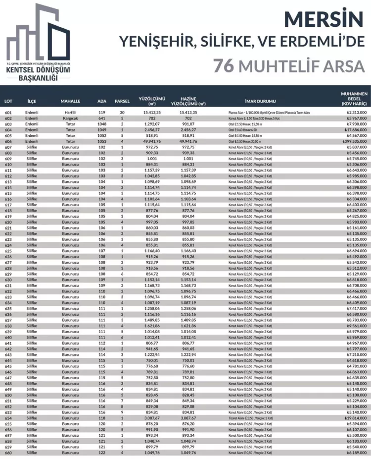 ADANA VE MERSİ'DEKİ ARSA SATIŞLARI NE ZAMAN?