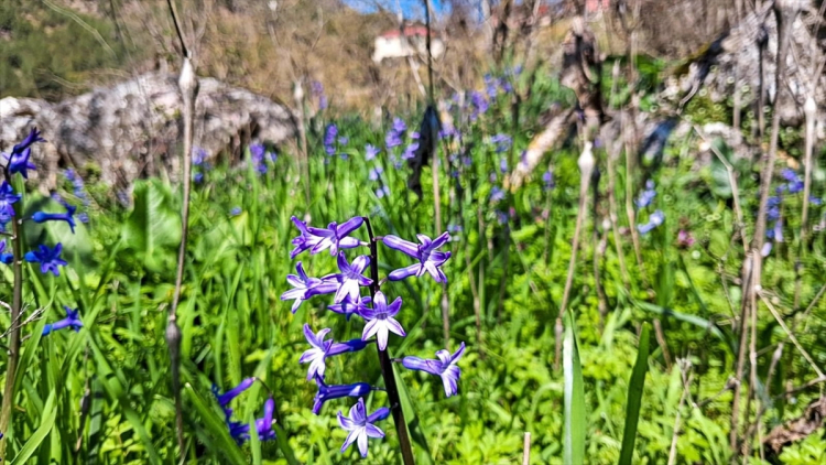 Doğal bitki örtüsü üzerinde farklı renklerde açan kır çiçekleri, bölgeye ayrı güzellik kattı.