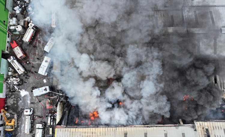 Adana'da geri dönüşüm tesisinde çıkan yangına müdahale ediliyor