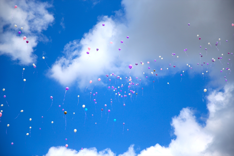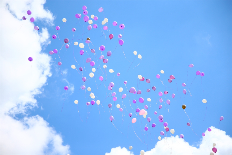 Etkinlikte katılımcılar tarafından gökyüzüne mor balonlar bırakıldı.