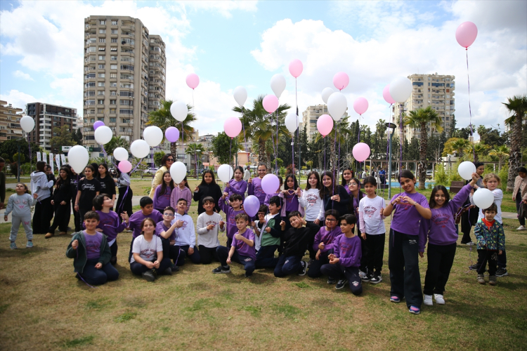 Adana'da kanser farkındalığı için gökyüzüne mor balonlar bırakıldı