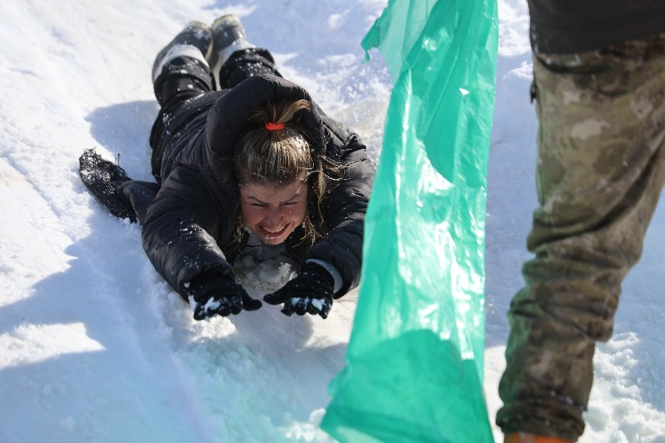 Toros Dağları’nın zirvesindeki Saimbeyli’de düzenlenen Adana usulü kayak festivali, renkli görüntülerle binlerce kişiyi karda buluşturdu. Klasik kayak takımları yerine poşet, bidon ve leğenlerle kayan vatandaşlar, hem eğlendi hem de unutulmaz anlar yaşadı. İşte festivalden objektiflere yansıyan eğlenceli kareler…