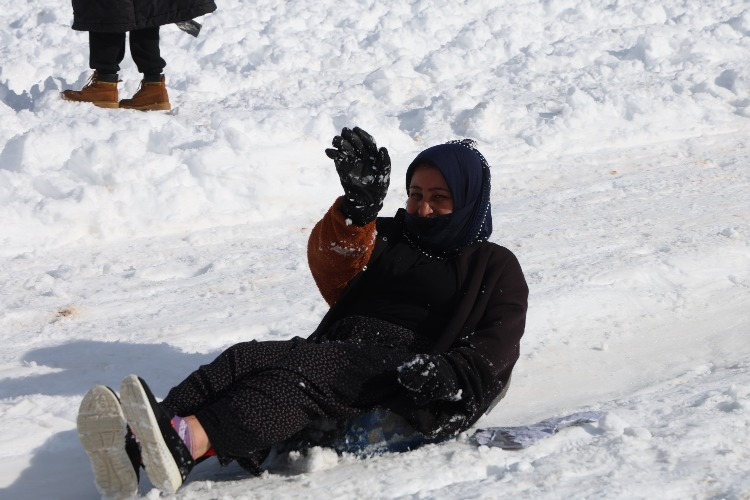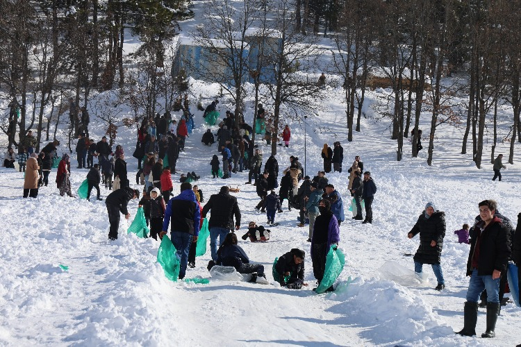 Adana’da kar şenliği: Torosların zirvesinde poşet, bidon ve leğenle kayak keyfi