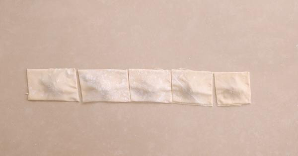 Hamuru Açın: Her bir hamur parçasını mısır nişastası yardımıyla incecik açın. Oklavaya dolayın ve üst üste gelecek şekilde katlayarak akordeon şeklinde 4 cm genişliğinde parçalar yapın.