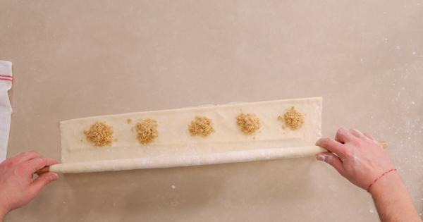İçiyle Doldurun: Hamurun 3. katına dövülmüş cevizi aralarına boşluk bırakacak şekilde yerleştirin. Hamuru katlar halinde sıkıştırarak her bir parçayı düzgün şekilde şekillendirin.