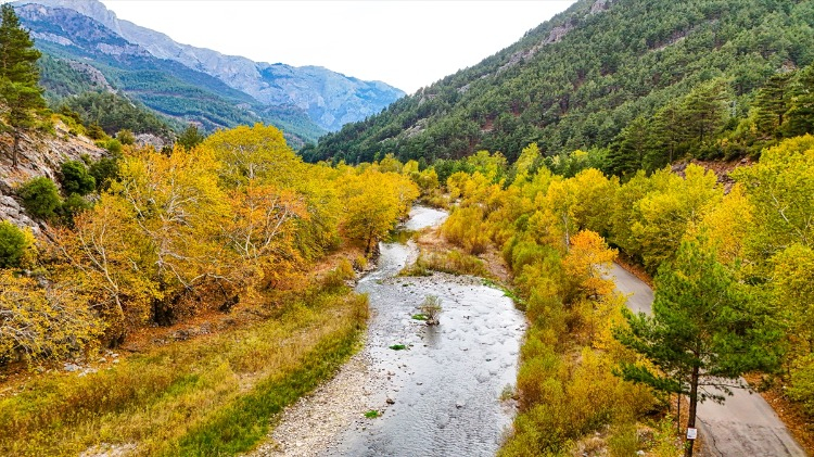 Pozantı’daki Belemedik Tabiat Parkı, sarı, kahverengi ve kızıl tonlarıyla büyüleyici bir manzaraya büründü. Dronla görüntülenen park, sonbaharın tüm renklerini gözler önüne serdi.
