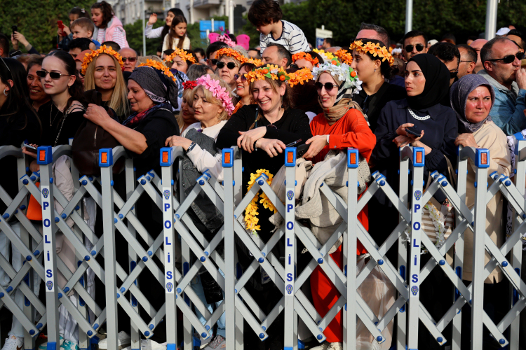 Korteje katılamayan vatandaşlar ise balkonlarından alkışlarla etkinliğe destek verdi. Renkli anlar, vatandaşlar tarafından cep telefonlarıyla kaydedildi.