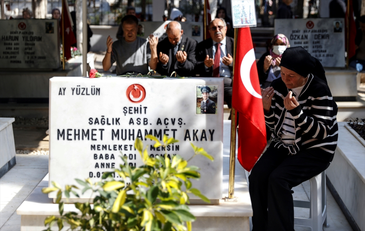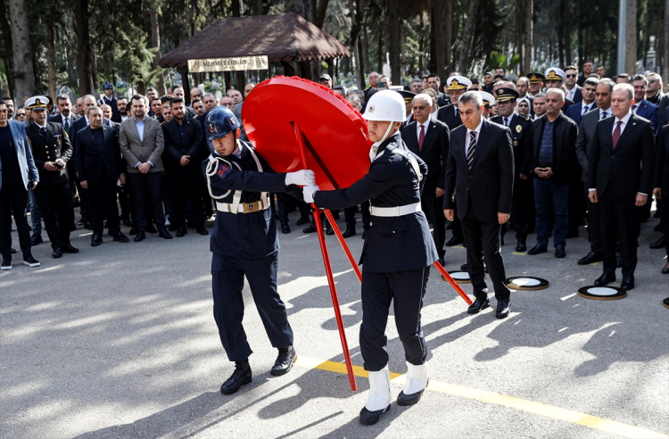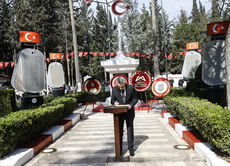 Mersin'de Vali Atilla Toros, Tuğamiral Korkut Şen, Büyükşehir Belediye Başkanı Vahap Seçer ve Türkiye Harp Malulü Gaziler, Şehitler, Dul ve Yetimleri Derneği Şube Başkanı Halit Şahin, Asri Mezarlığı'ndaki törende şehitlik anıtına çelenk bıraktı.