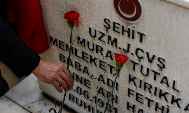 Konuşmanın ardından protokol üyeleri ve vatandaşlar şehitlerin kabrine karanfil bıraktı.