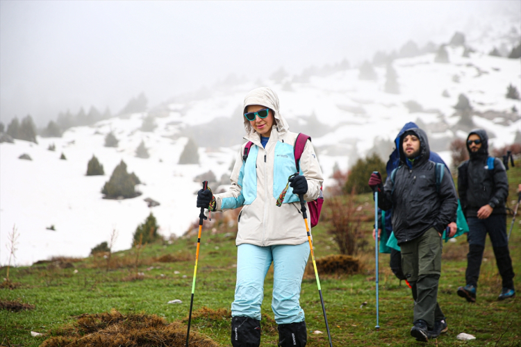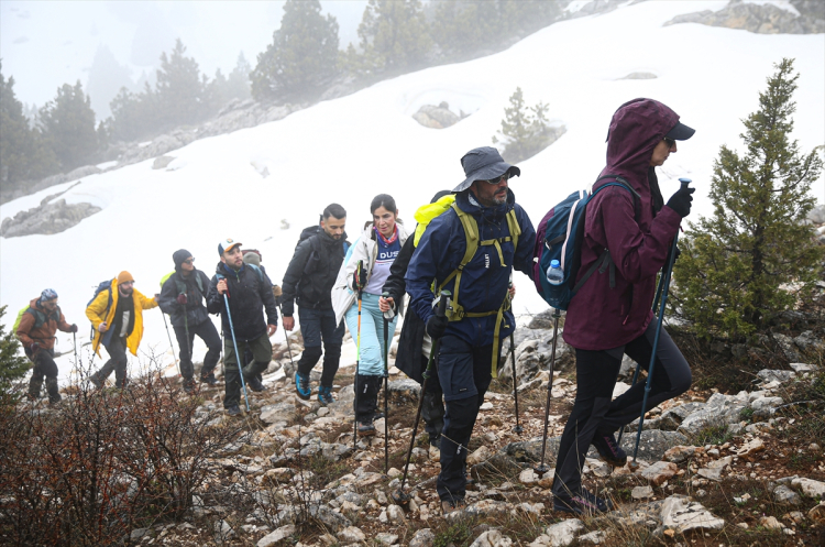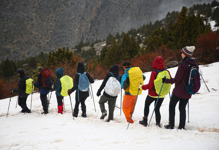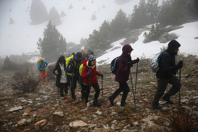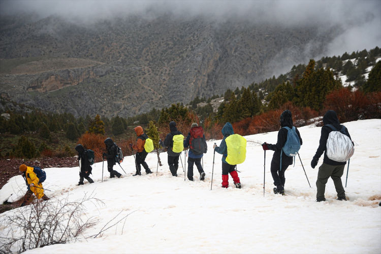 Adana, Niğde ve Kayseri sınırlarında yer alan Aladağlar, ilkbahar aylarında da doğa sporlarının gözde adresi olmaya devam ediyor. Kar, sis ve rüzgarın etkili olduğu bölgede yürüyüş yapan sporcular, zorlu şartlara rağmen performanslarını artırmayı hedefliyor.
