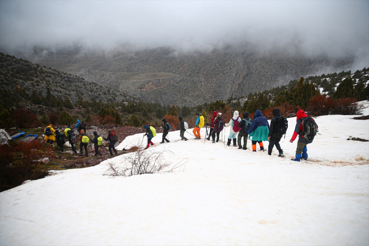 Adana ve Mersin’den yola çıkan Kilikya Dağcılık ve Doğa Sporları Kulübü üyesi 23 kişilik ekip, Niğde sınırlarında yer alan Emli Vadisi’nde kamp kurdu. Ekip, ardından kar, sis ve rüzgarın etkili olduğu parkurlarda ilerleyerek 2 bin 400 rakımlı Oluksekisi Yaylası’na ulaştı.