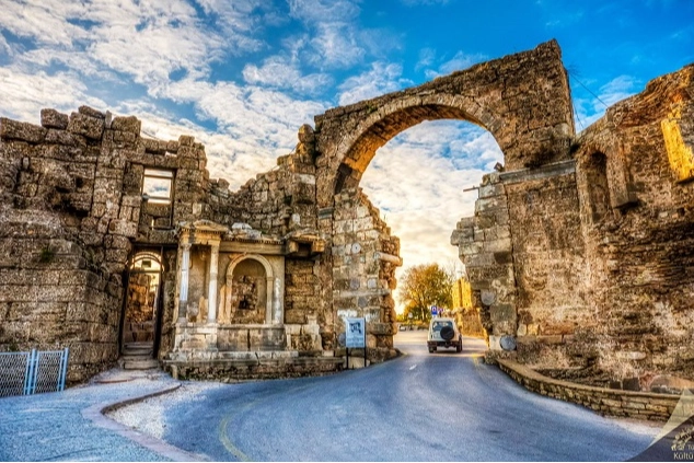 Side Antik Kenti, bir yarımada üzerine kurulmuş ve kentteki iki ana cadde, antik yapıları ve sütunlu portikleriyle dikkat çekmektedir. Bu cadde, tapınaklar ve büyük meydanlarla sonlanır ve bu alanlar, geçmişin ihtişamını yansıtmaktadır.