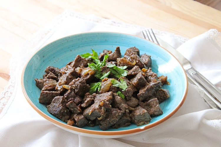 Ciğerleri iri kuşbaşı doğrayın.