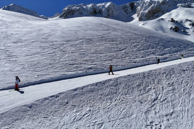 Bu sezon yaklaşık 200 bin kişiye ev sahipliği yapan 2 bin 635 metre rakımlı kayak merkezinde ziyaretçiler pistlerde kayak, snowboard ve kızaklarla kaymanın keyfini çıkarıyor.