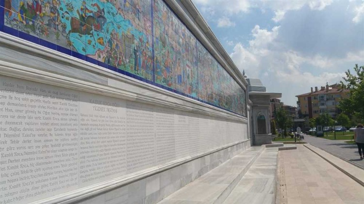 Bu çinilerin hemen altında ise destanlara ait hikâyelerin yer aldığı paneller bulunuyor. Ziyaretçiler, duvar boyunca yürüyerek Türk kültürünün bu kadim hikâyelerini görsel bir şölen eşliğinde yeniden keşfetme fırsatı buluyor.