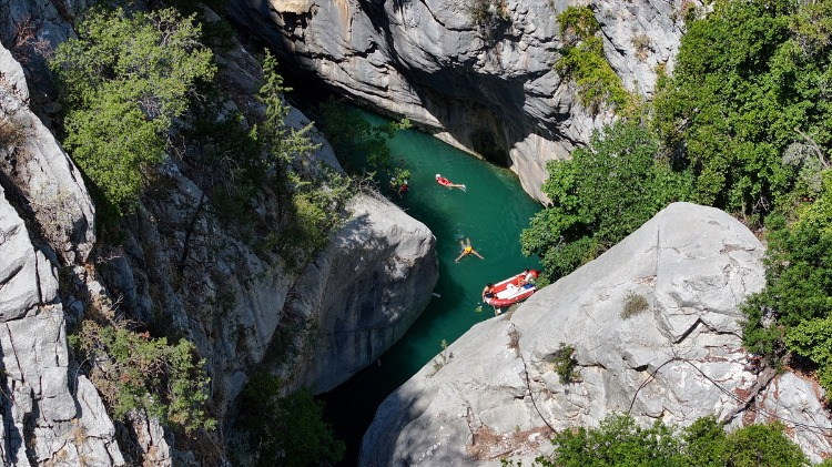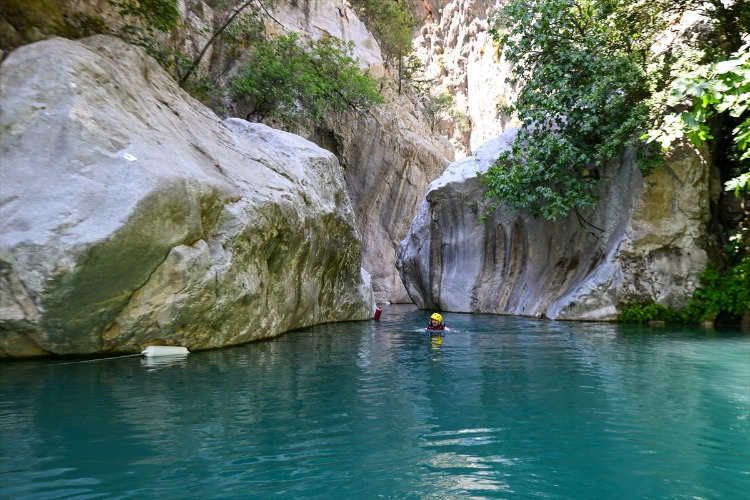 Yaklaşık 4,5 kilometrelik uzunluğa sahip Göynük Kanyonu, sarp kayalıklar, şelaleler ve yemyeşil orman dokusuyla masalsı bir atmosfer sunuyor. Özellikle Antalya’da sıcaklıkların 46-47 dereceleri bulduğu günlerde, kanyonun 15-16 derecelik buz gibi suyunda serinleyen maceraseverler unutulmaz anlar yaşıyor.