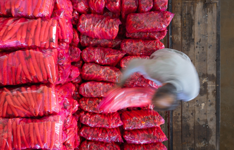 Sabahın ilk ışıklarıyla birlikte çamurlu tarlalara giren tarım işçileri, havuç söküm işlemlerini titizlikle yürütüyor. Toprak altından çıkarılan ürünler, işleme aşamasına alınarak kadın işçiler tarafından saplarından tek tek arındırılıyor. Ayıklama işleminin ardından temizlik ve yıkama aşamalarından geçen havuçlar, modern paketleme yöntemleriyle sevkiyata hazır konuma getiriliyor.
