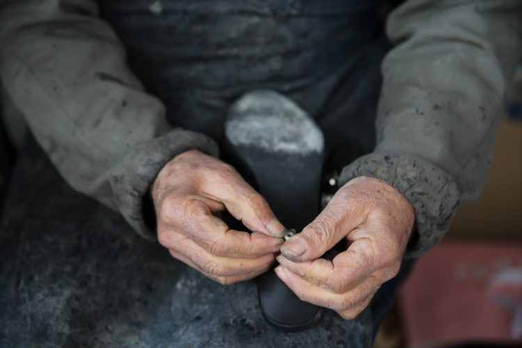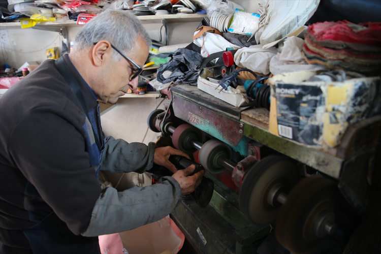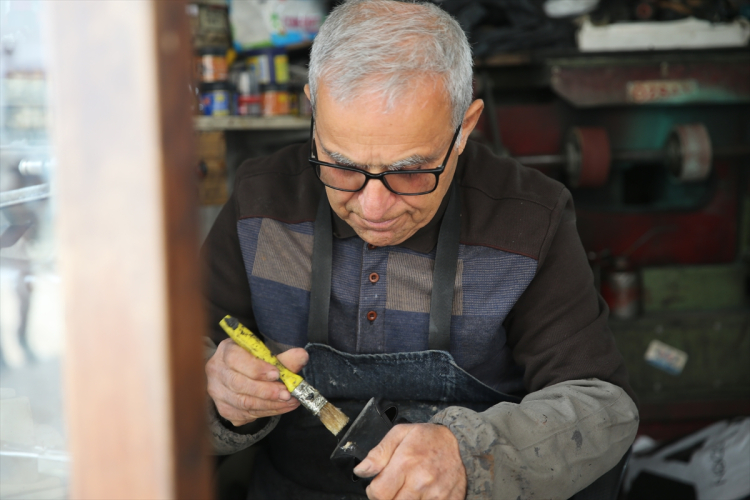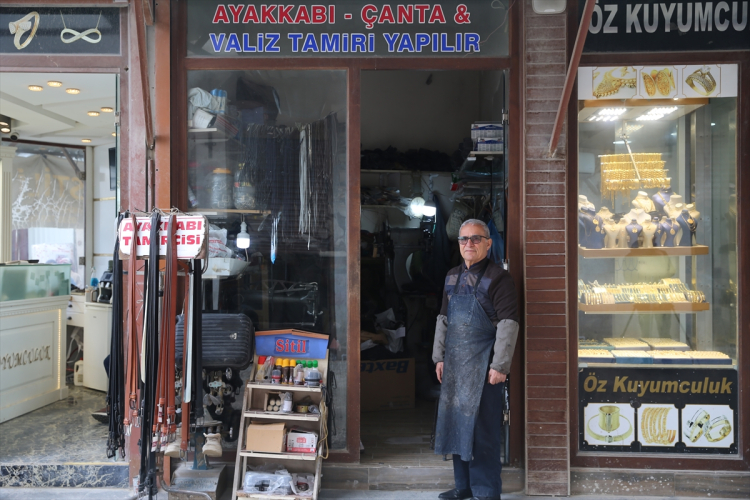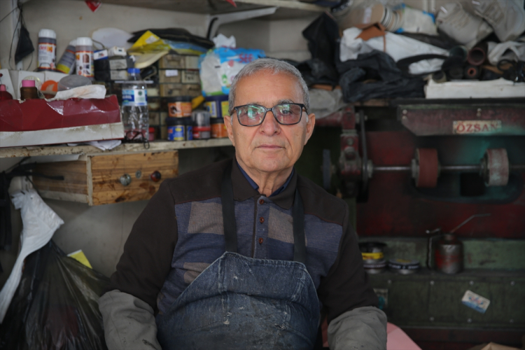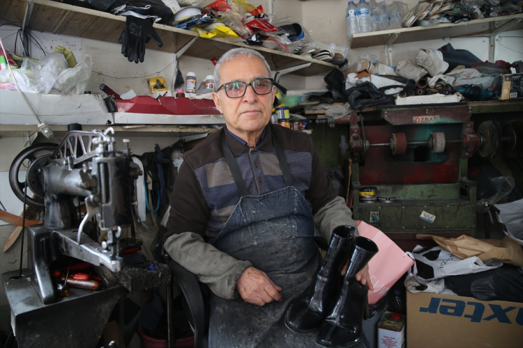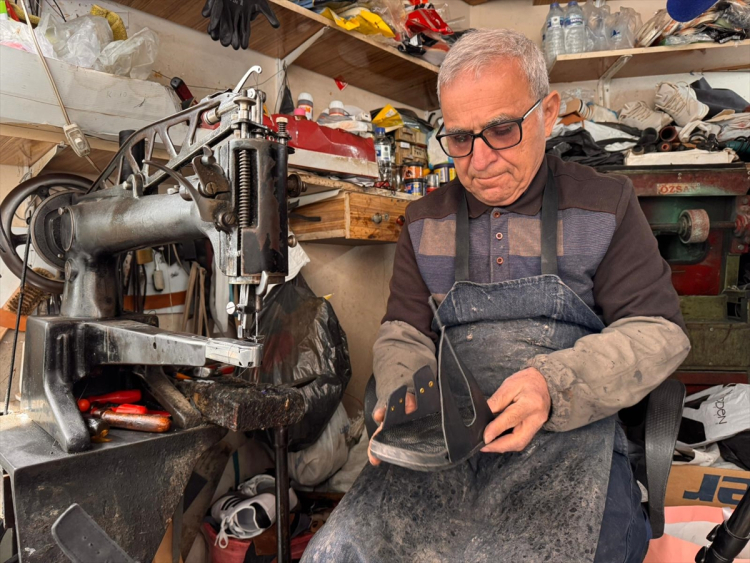 Teknolojik dönüşüme ve bölgeyi sarsan doğal afetlere rağmen tezgahının başından ayrılmayan tecrübeli usta, her türlü ayakkabı onarımını kendi elleriyle gerçekleştiriyor.